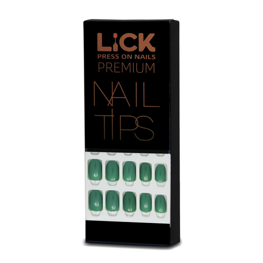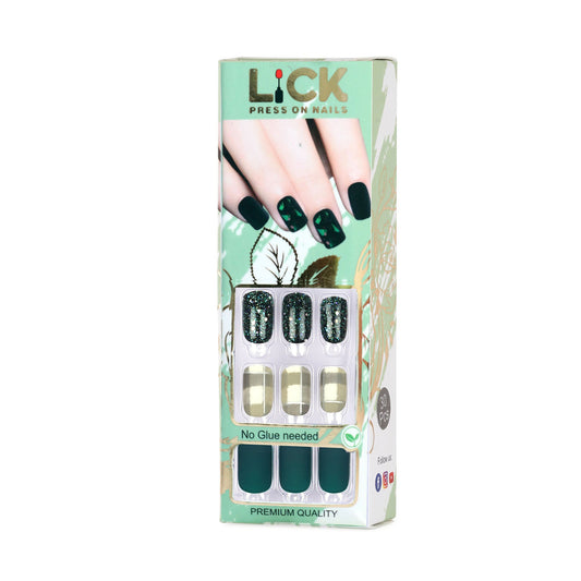 LICK NAILS Green Glitter with Checkered print Press on Nails