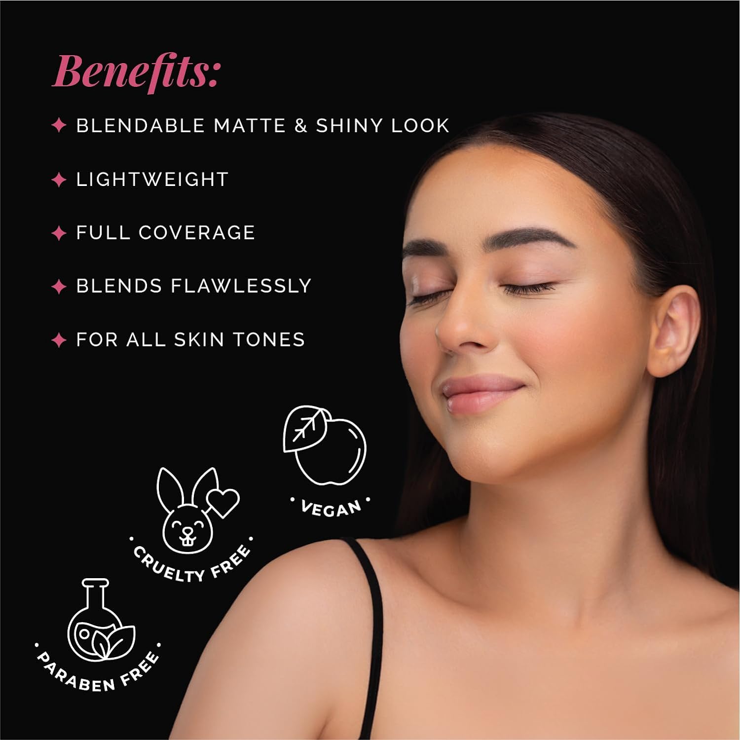 - Complete Coverage Concealer: The second line features 6 concealer shades, designed to conceal blemishes, dark circles, and imperfections, giving you a flawless finish and a radiant appearance.