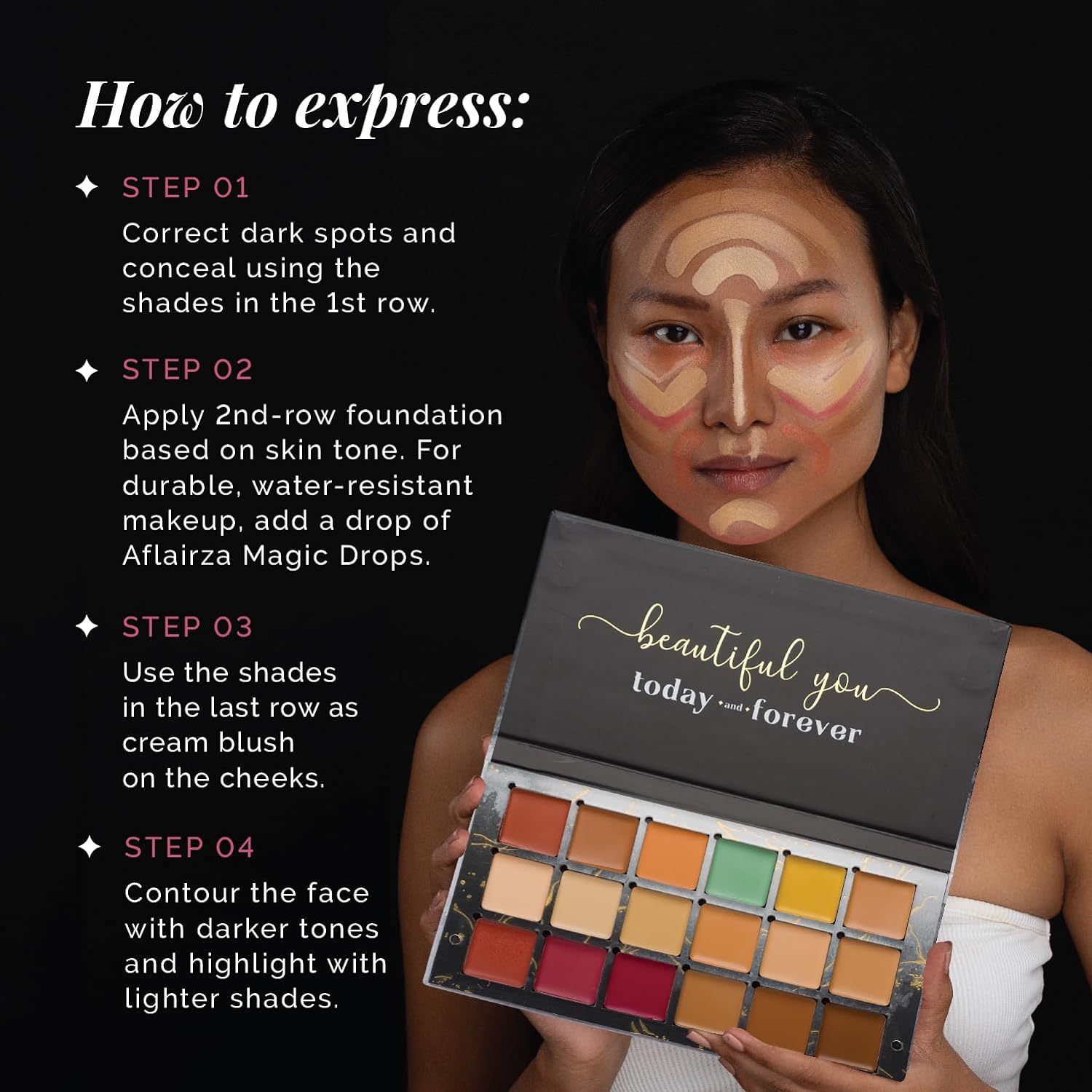 Aflairza 18 Shades Makeup Palette Foundation Concealer, Contour and Blush for Professional Makeup Look for Blendable, Matte or Shiny Makeup Look Suitable for All Skin Tones (Black)