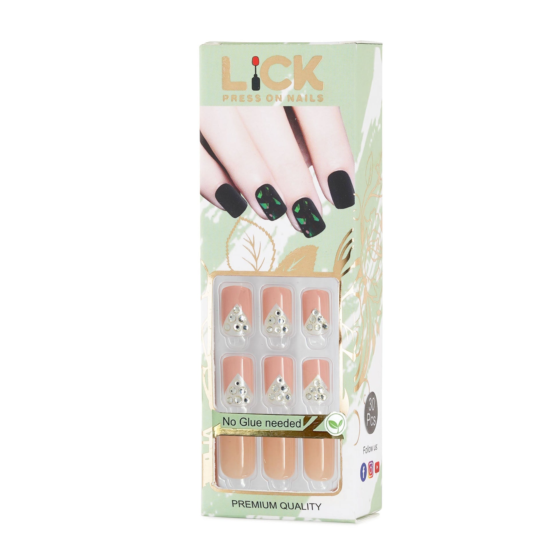 Lick Nails 30 Pcs Shaded With Glitter Square Shape Press On Nails