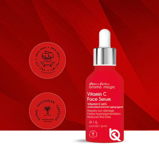 The Blossom Kochhar Aroma Magic Vitamin C Face Serum is an amazing skincare product that combines the benefits of natural extracts, essential oils, and vitamin C. This serum is an antioxidant and anti-aging agent that repairs sun damage, treats hyperpigmentation, and reduces fine lines.