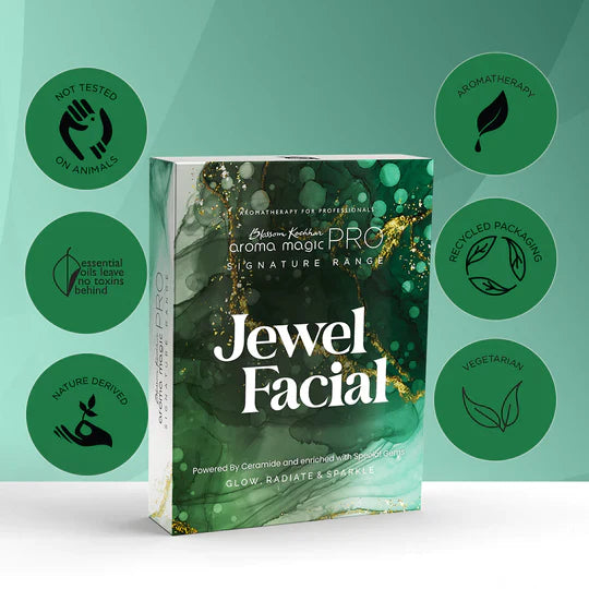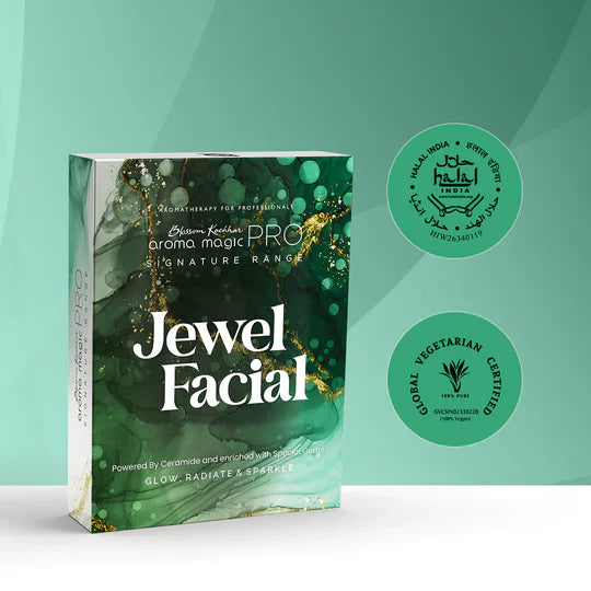 The Jewel Facial is our unique signature offering and special creation for the salon and spa industries. It is a 5-step professional treatment that takes just 55 minutes. The goodness of precious stones and trace elements of Gold and Silver tones and adds radiance to the skin. It is curated with Orchid flower extract, Lotus leaf extract and Licorice root extract that brightens and nourishes while restoring the skin’s natural appearance. Enriched with Ceramides, it repairs and protects against visible signs of ageing, strengthens the skin barrier and seals in moisture. The blend of aroma oils helps to improve the receptiveness of vital nutrients to maintain skin hydration.