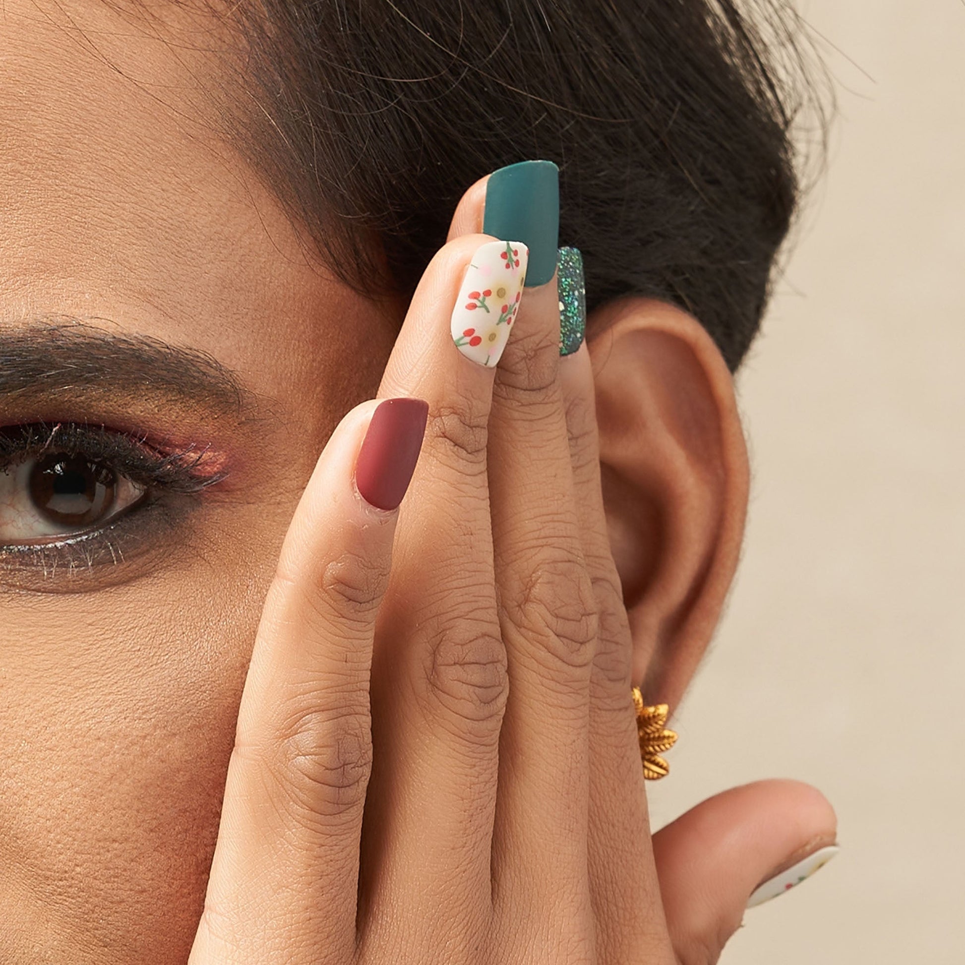 LICK NAILS Emerald Green With Floral Design Press on Nails