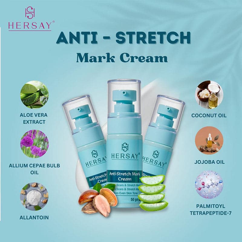 Hersay Anti-Stretch Mark Cream is unique blend of vitamins and precious botanical extracts which intensely hydrates the skin and also improves skin barrier function and skin elasticity which improves the formation as well as appearance of scars‚ stretch marks and uneven skin tone during or after pregnancy, teenage growth spurts, period of rapid weight gain & loss. It also deeply hydrates & nourishes the skin & experience the velvety, softer & smoother skin never before.