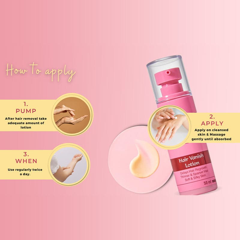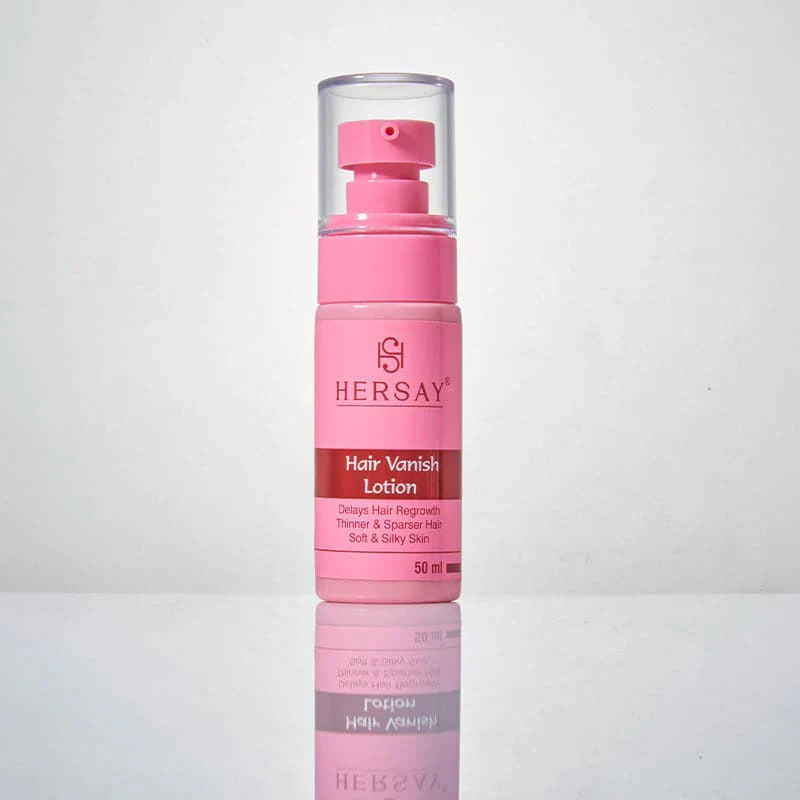 Hersay Hair Vanish Lotion is hair growth inhibitor formulated to reduce the amount & quality of unwanted hair, thus reducing depilation sessions. This lotion penetrates into the skin to weaken the hair roots & slows down hair growth while refining its diameter. With every application, new hair emerges late, thinner and sparser. It also helps to nourishes and soothing the skin & makes your skin soft & silky.
