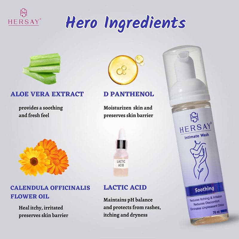 Hersay Intimate Wash Offers pH that helps to maintain natural & delicate balance of vulvovaginal flora & there by increases it’s natural defense. Moisturizing, safe, mild & gentle formulation, enriched with natural extracts Daily usage & specially during menstruation protects the intimate area from discomfort, irritation, unpleasant odor & provides long lasting freshness & intimate well being Completely Sulphate & Paraben Free
