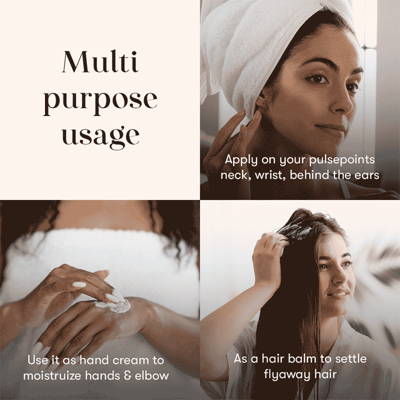 Solid Perfumes are the oldest form of perfume is made using 100 % pure Bees wax, Shea butter, Vitamin E and natural perfume oils. It is easy to carry in your pocket, & designed to work as a Hand Cream, Skin Moisturizer & Hair Balm to smooth flyaway hairs. It has long lasting fragrance & contains organic & natural ingredients, non-alcoholic, cruelty-free and phthalates, parabens free.