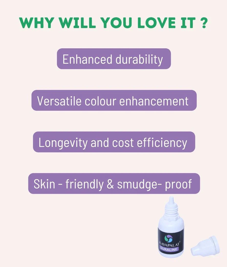 - Apply and enjoy: Once the Duraline is mixed thoroughly with your makeup product, apply it to the desired area of your face, such as eyelids for eyeshadow or eyebrows for brow products. Enjoy the intensified color payoff, enhanced longevity, and waterproof properties that Duraline provides.