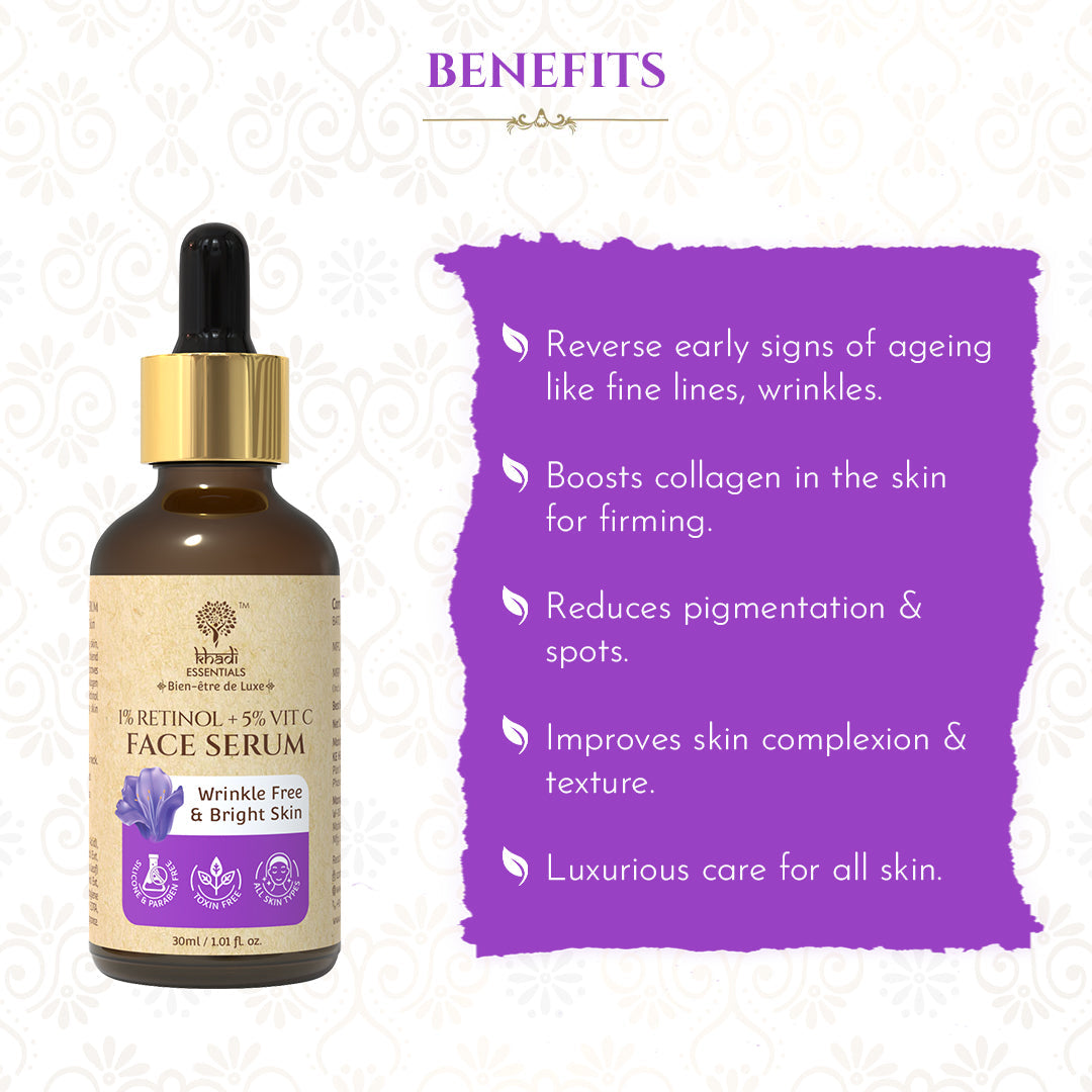 Retinol & Vitamin C Face Serum for Wrinkle-Free, Glowing & Bright Skin