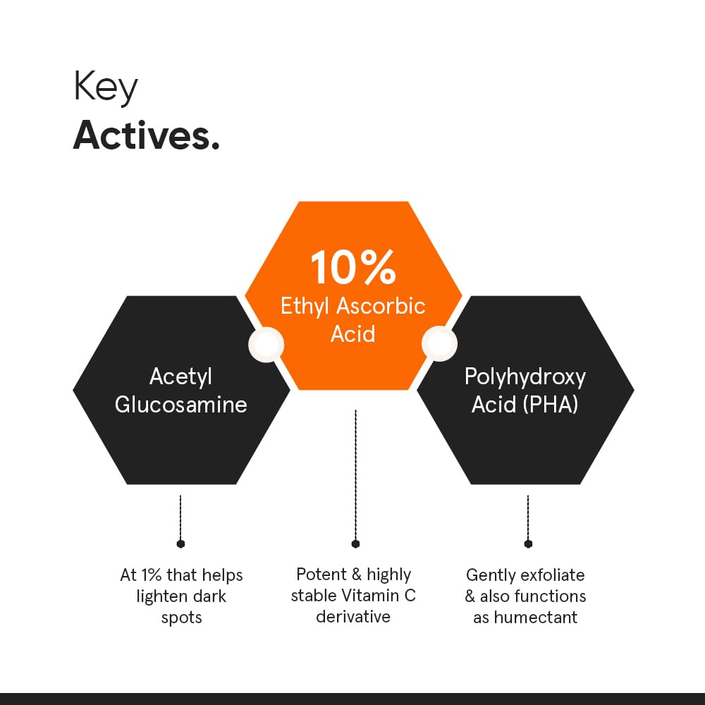 - A POTENT STABLE VITAMIN C FACE SERUM: Not all Vit C serums are made equal! This serum is is made with a stable Vitamin C derivative, 10% Ethyl Ascorbic Acid that is closest to pure Vitamin C (L-Ascorbic Acid) in molecular size and weight. With similar molecule size and 86% pure Vitamin C content it delivers maximum benefits of Vitamin C without getting bad or losing efficacy till the last drop (unlike other Vitamin C serums).
