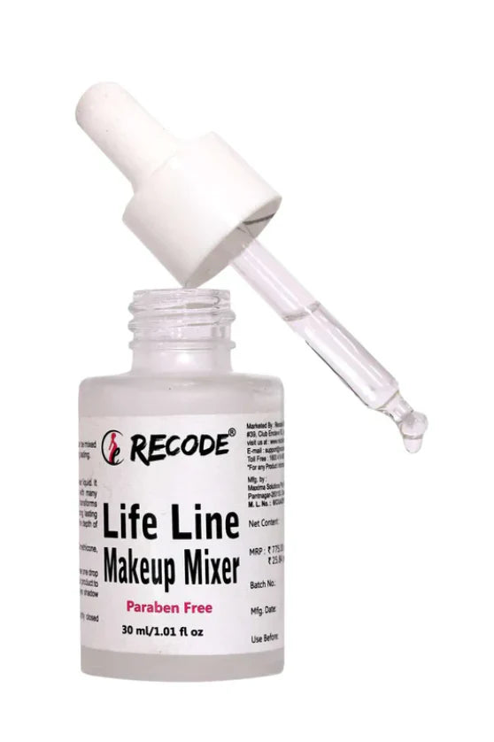 Recode LifeLine Makeup Mixer is waterless, clear liquid. It helps to create a long lasting effect with many Makeup products. This product transforms mascara, eye shadow, gel liner into long lasting eyeliner. This product also intensifies the depth of products.