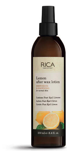 Renowned for its calming and anti-inflammatory properties, the lemon after waxing lotion from Rica removes any residual wax, soothing and moisturising the stressed skin. Most importantly, the calming influence of this lotion is perfectly complemented by its moisturizing properties. This dry lotion is non-greasy and rapidly gets absorbed into the skin. They quickly calm the normal redness that can occur when waxing and remove gently any wax residue. Their base formulas contain a mixture of natural oils that nourish and soothe the skin after depilation.