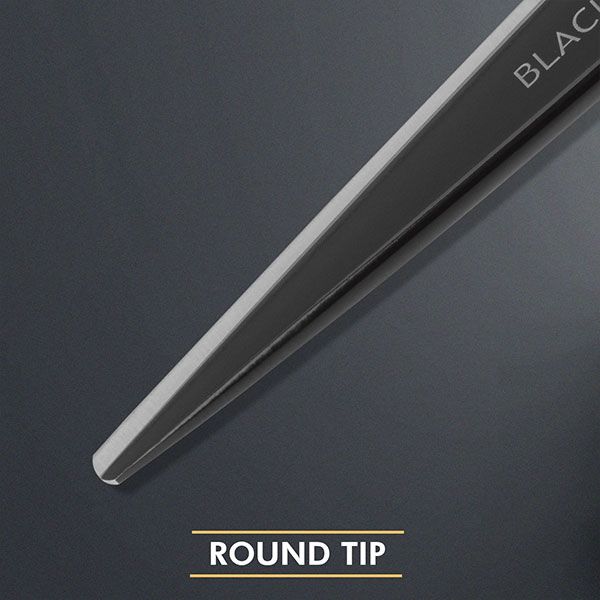 The slightly convex blades with a semi integrated with pointed cutting angle offer very long lasting sharpness. Thanks to the hollow grinding and honing the black line hair scissors has ideal slice properties. Made of special Japanese stainless steel, this hair scissors offers very long lasting sharpness. The high-quality, matt black titanium coating gives the hair scissors a premium design. It also provides protection against nickel allergy. The offset handle shape with angles thumb position helps in relaxing arm, neck and shoulder muscles. On the detachable finger hook, the little finger can be conveniently placed and the hairdressing scissors can be safely guided. The flat and self-contained SMART SPIN screw system ensures a particularly easy